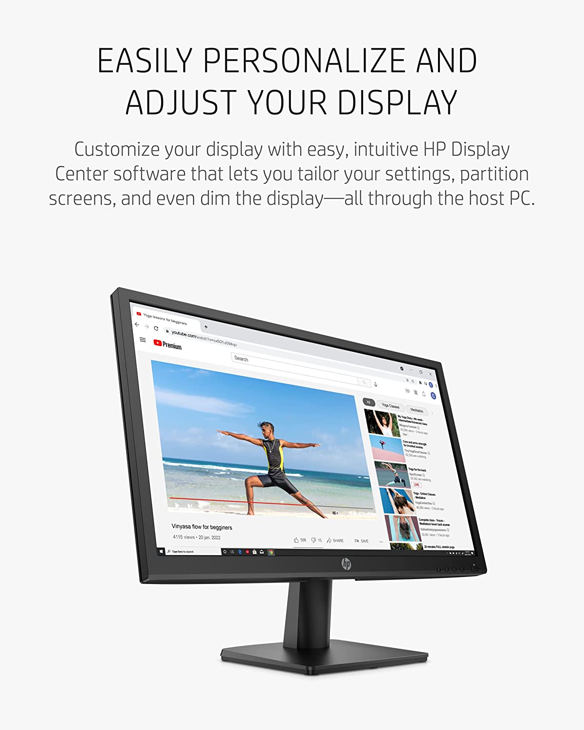 • PERSONALIZE YOUR SETTINGS – Intuitive HP Display Center software lets you customize your monitor to your liking through tailoring display settings, partitioning screens, and even dimming the screen—all through the host PC.