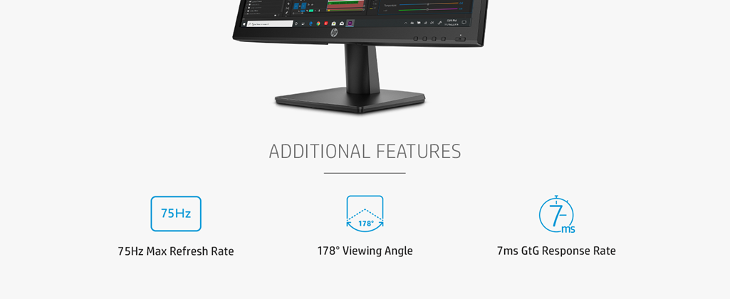 • WARRANTY AND SUSTAINABILITY – Rest easy and work confidently with an environmentally conscious and energy-efficient monitor, backed by HP standard 1-year limited warranty and shipped in completely recyclable packaging (4).