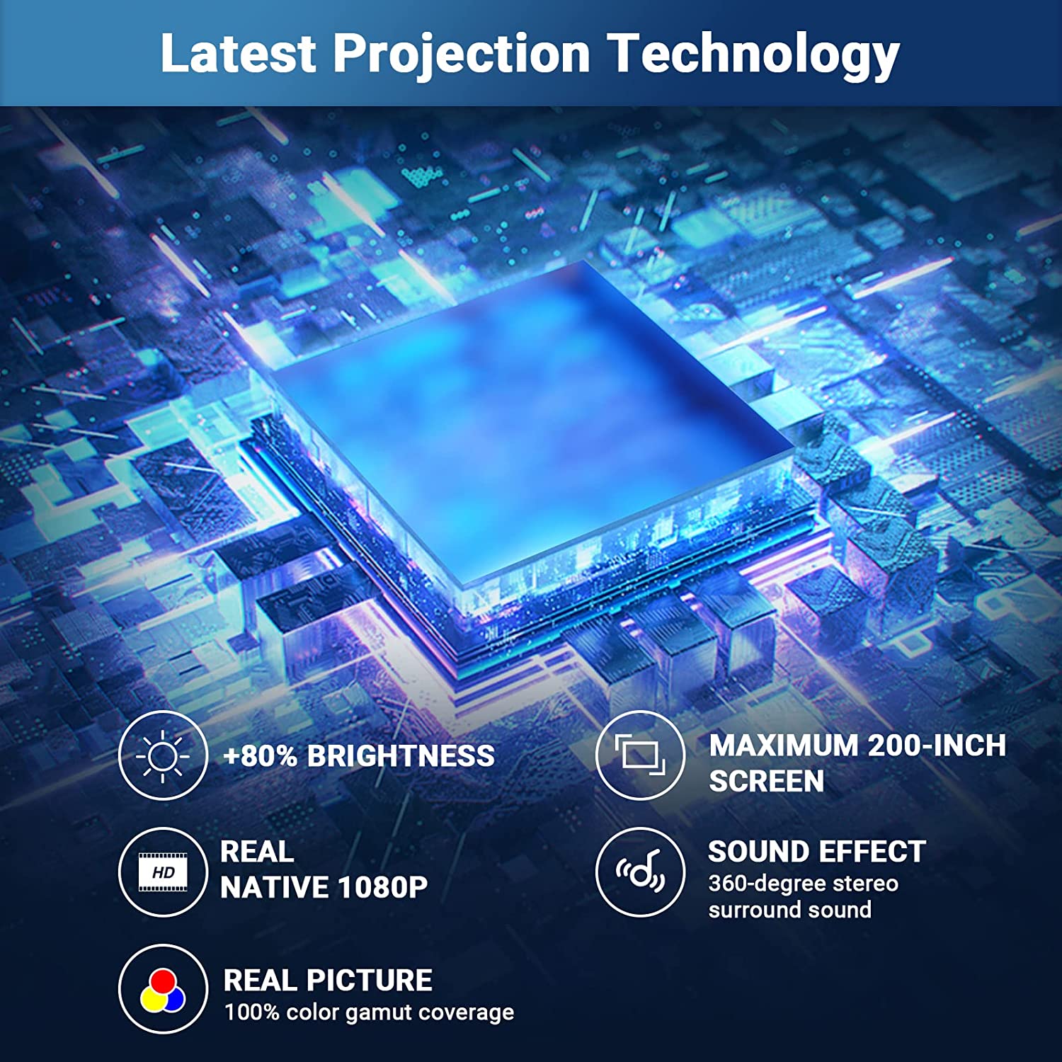 • ?【2023 Advanced Bluetooth Connectivity Technology】With this Bluetooth projector, you can connect your speakers or headphones at any time (Bluetooth do not support phone), the projector with Bluetooth 5.1 makes the audio synchronization faster and more stable, and enhances your immersion in the movie scene. The projector's dual built-in HiFi stereo surround speakers restore the original audio fidelity, allowing you to feel an excellent listening experience without connecting external speakers.