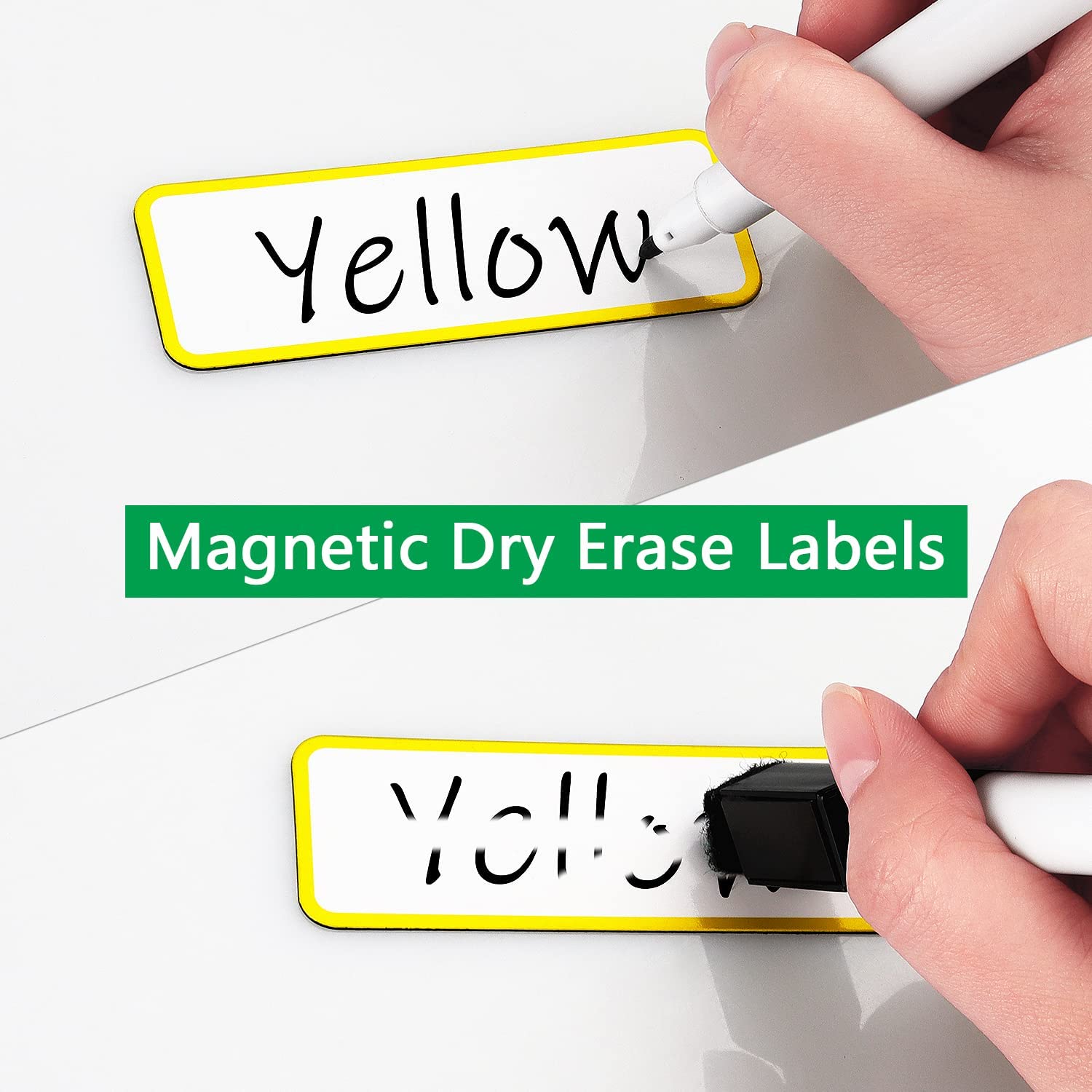Stary City Magnetic Dry Erase Labels Name Plates Tags Rainbow Neon Sticker for Whiteboards Locker Fridge, 27 Lables 9 Colors, 3.2inch x 1.2inch,White