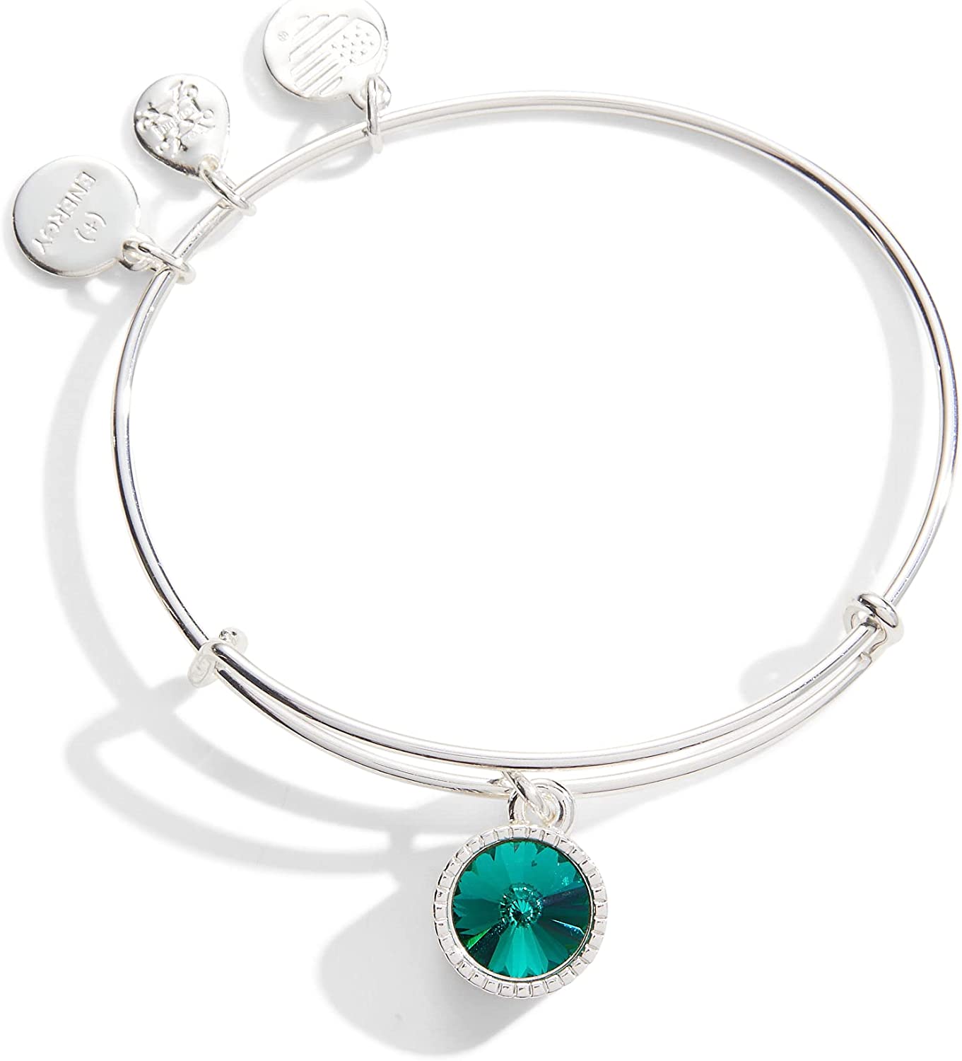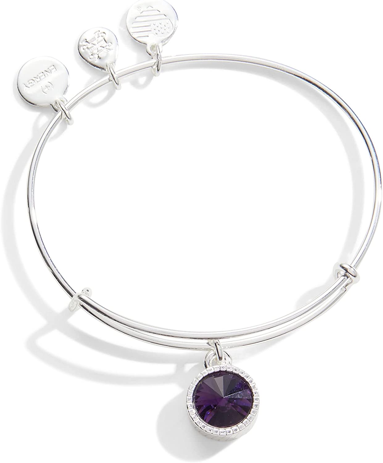Alex and Ani Birthstones Expandable Bangle for Women, Birthday Crystal Charms, Shiny Finish, 2 to 3.5 in