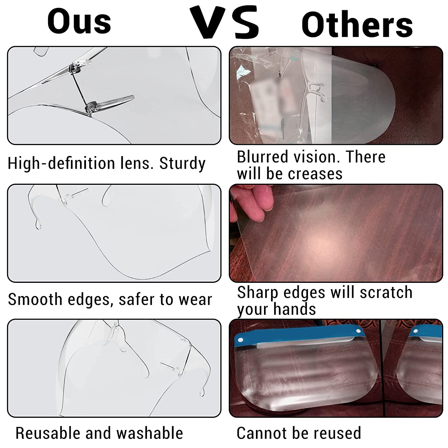 • ❤【FULL-FACE PROTECTION】Length of clear face shields is 5.47 in, width is 6.14 in. From eyebrows to chin, it provides you with 180° full protection from saliva, droplets, oil, splashes and sand. It is a great gift for Christmas, New Year, family gatherings and birthdays of friends.