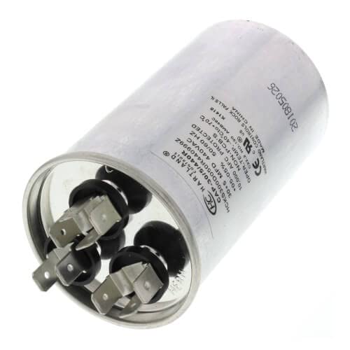 A capacitor is an electric component that temporarily stores an electrical charge. A "run capacitor" supports electric motors, such as in air conditioner or heat pump units, a fan motor and a compressor motor. The capacitor has two terminals. Capacitors come in a variety of sizes, depending on the capacitance (µF or MFD), such as 40 plus 5 µF, and also the voltage. A 440 volt capacitor can be used in place of a 370 volt, as it is build better, but the 370 can’t be used in place of a 440 volt. It will work for a while and will fail prematurely, as exceeding the capacitor's rated voltage will cause the dielectric to break down and the capacitor to short out. Same as an electric wire- 600V rated wire is better than 300V one .The capacitance(µF or MFD) must be the same or stay within 10%+ or 5%- of its original value . Example: 50 µF cap can be substituted by 47.5 to 55 µF with the same or better voltage ratings capacitor . Round oval-shaped run capacitors are commonly used for air conditioning, to help in the starting of the compressor and the condenser fan motor.