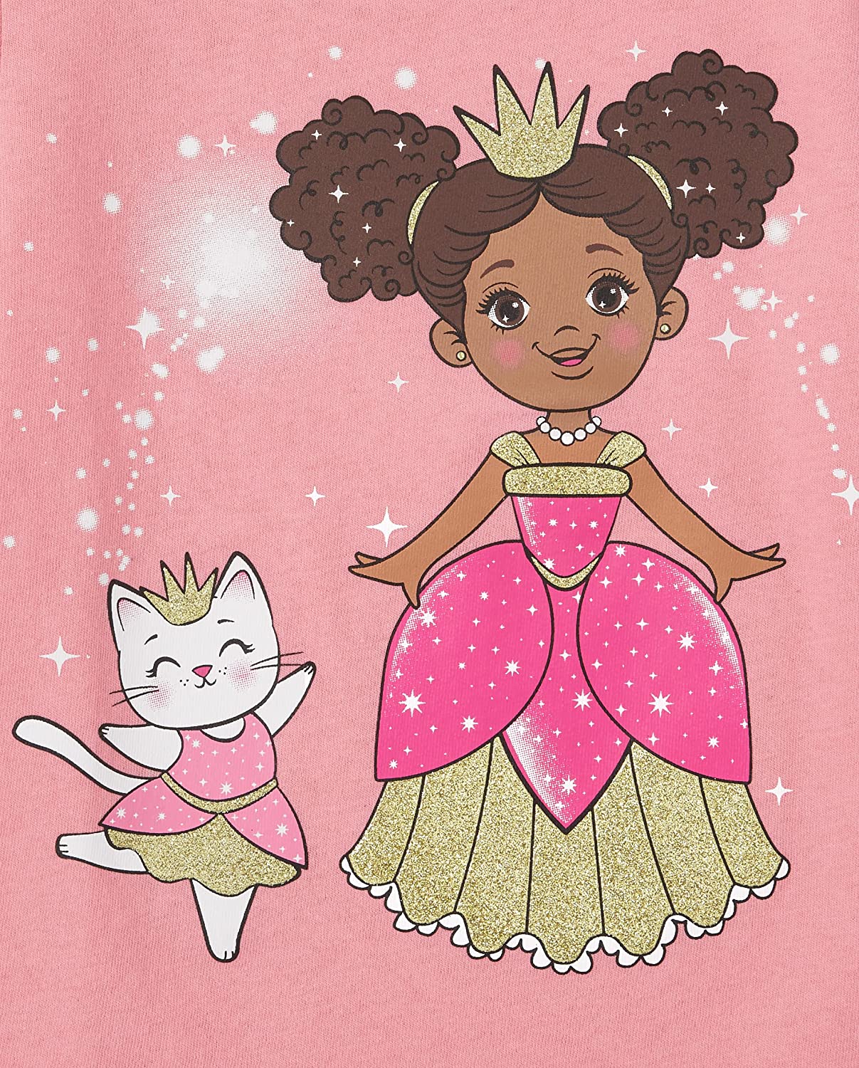 • MULTIPACK — Pack of 2 graphic tees: 1 tee with princess and cat graphic design at front; 1 tee with 'Princess' and crown graphic design at front