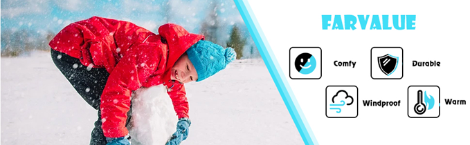 FARVALUE Boys Waterproof Ski Jacket Windproof Winter Coat Warm Snow Coat Outdoor Raincoats Hooded Windbreaker