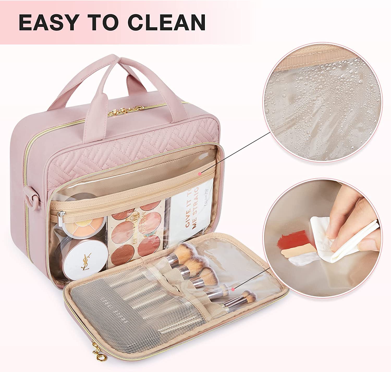 • Convenient to Use - See-through zip pockets and main compartment for providing clear overview of contents. The top handle and detachable shoulder strap make it easy to carry. Two-way zipper closure for quick access.