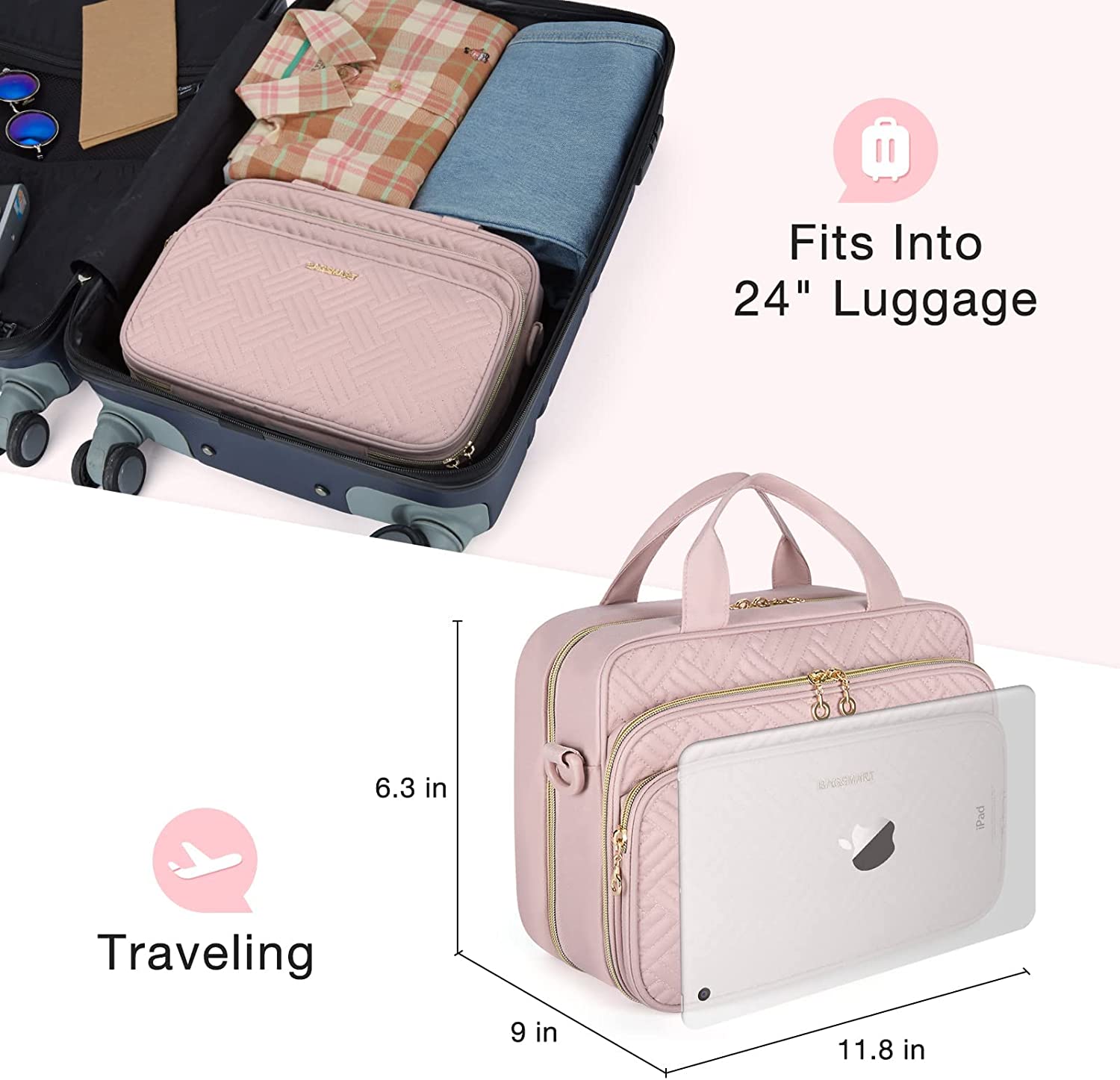 BAGSMART Toiletry Bag, Travel Toiletry Bag for Women, Water-resistant Cosmetic Makeup Bag, Large Capacity Travel Organizer for Full Sized Toiletries and Cosmetics