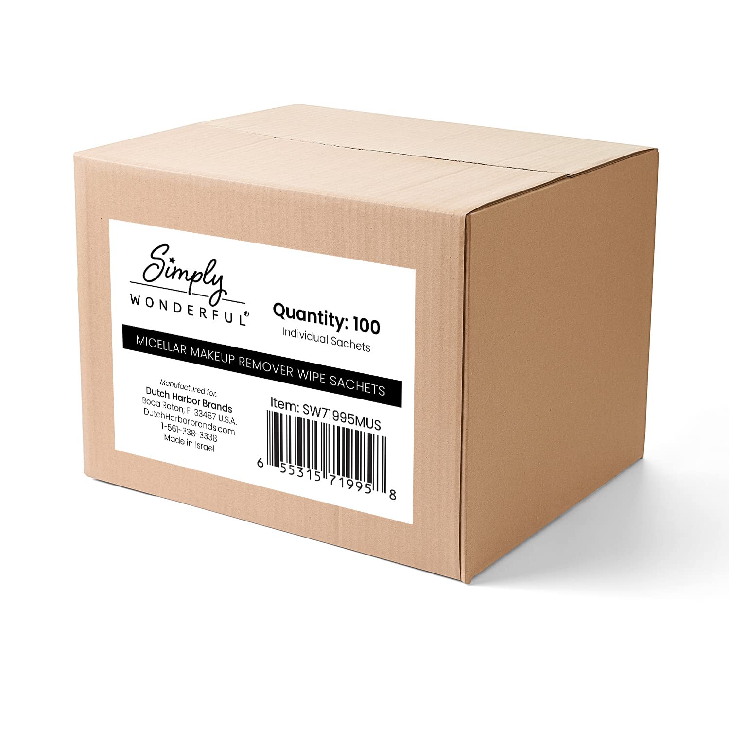 Simply Wonderful Makeup Remover Wipes - Individually Wrapped Makeup Wipes with Micellar Water Makeup Remover for Facial Wipes Cleansing, Remove Makeup, Mascara, Lipstick, Oil and Dirt, 100 Bulk Makeup