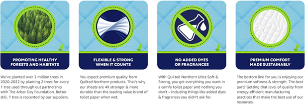 Strong, comfy & sustainably made. We think everything should feel comfortable about your toilet paper, including the way you feel about your impact on the environment. Quilted Northern Ultra Soft & Strong toilet paper is the perfect blend of sustainability and premium comfort, with two soft layers that flex and hold up, all created using responsible manufacturing practices and wrapped in paper you can recycle from the comfort of your own home. Our products are biodegradable, septic safe, and made with no added inks, dyes or fragrances. Our trees are sourced from well-managed, FSC certified forests and other responsible sources. Additionally, we are on a mission to plant 3 Million Trees from 2020-2022 through our partnership with Arbor Day Foundation, and that’s just the beginning!