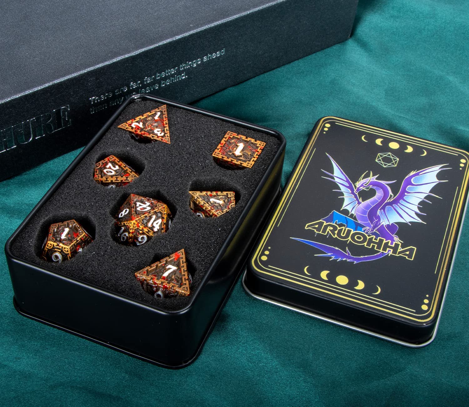 7PCS DND Metal Dice Set ARUOHHA Polyhedral Dice Set with Gift Box Large D&D Dice for Dungeons and Dragons MTG Pathfinder RPG Roll Playing Dice 6 Sided D and D Dice D20 D12 D10 D8 D6 D4