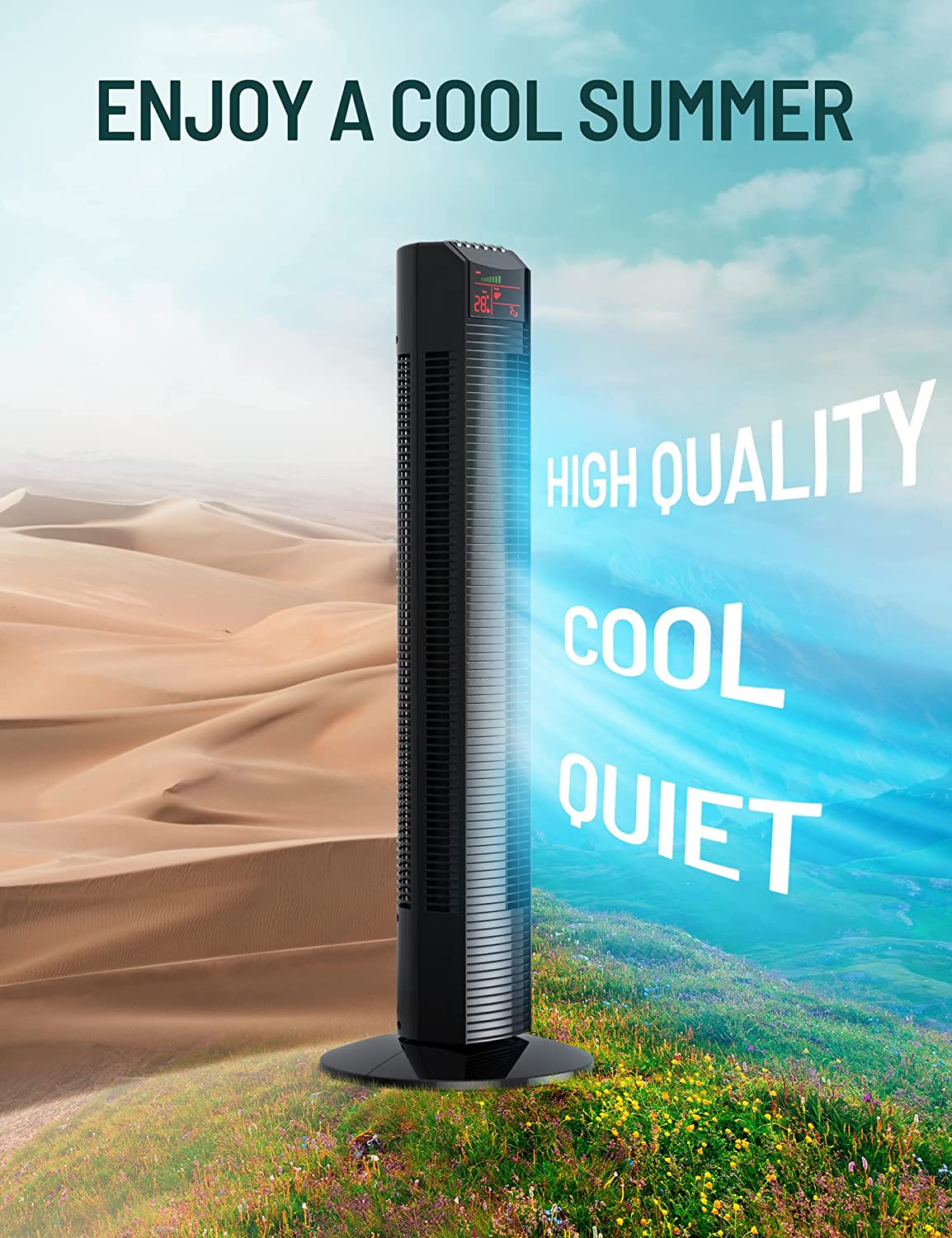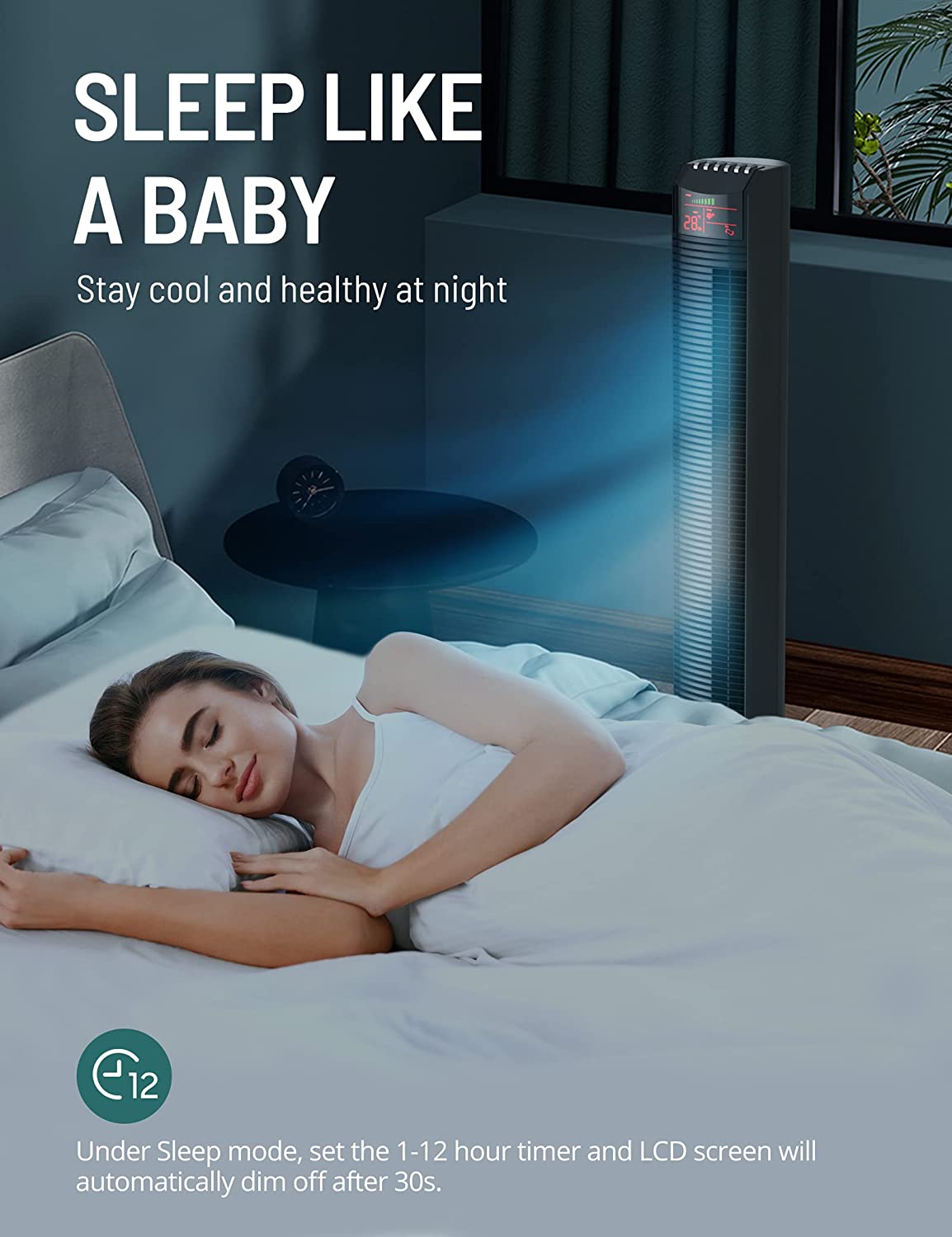 - Lower Noise, Better Sleep: This powerful yet silent tower fan brings comforting, cool breeze in an ultra-quiet way (only 45dB!); built-in timer can be set from 1 to 12 hours for a good night’s sleep or cool nap