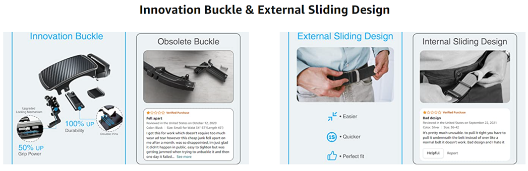 • ?【External Wearing】: Compared with internal sliding invisible nylon belt which must put your finger underneath the belt and difficult to tighten, our outside tail design just need hold the tail, one second to tighten up, much easier and quicker.