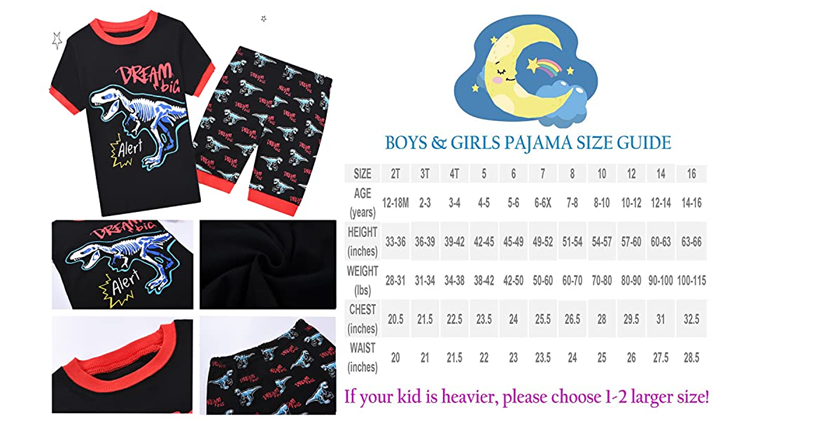 • ♥ {100% Satisfaction Services}: For child's safety, the kids pajamas set should fit snugly and run small. We recommend to choose one or two size bigger. Please consult our size chart before ordering. If you are not completely satisfied, please feel free to contact us for assistance.