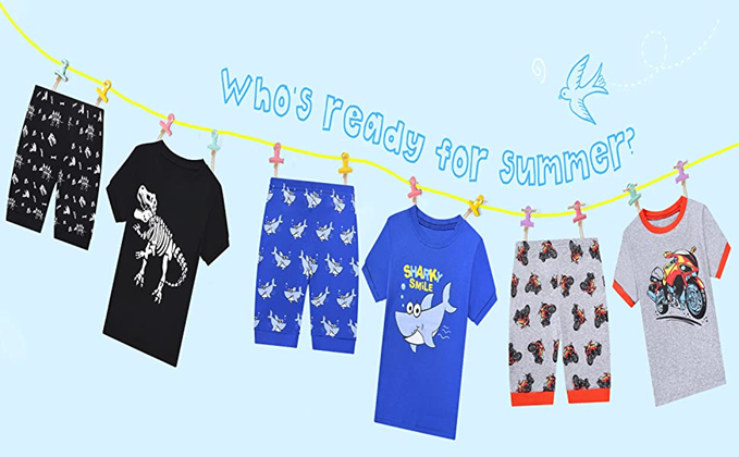 • ♥ {Add a Splash of Vibrant Design to Summertime}: Nightwear for kids designed with adorable printing - colorful and fun dinosaurs, vivid Dino bones, friendly shark, playful excavator and car decorate these pajamas to inspire dreams. Hug your little one for a safe and cozy night's rest.