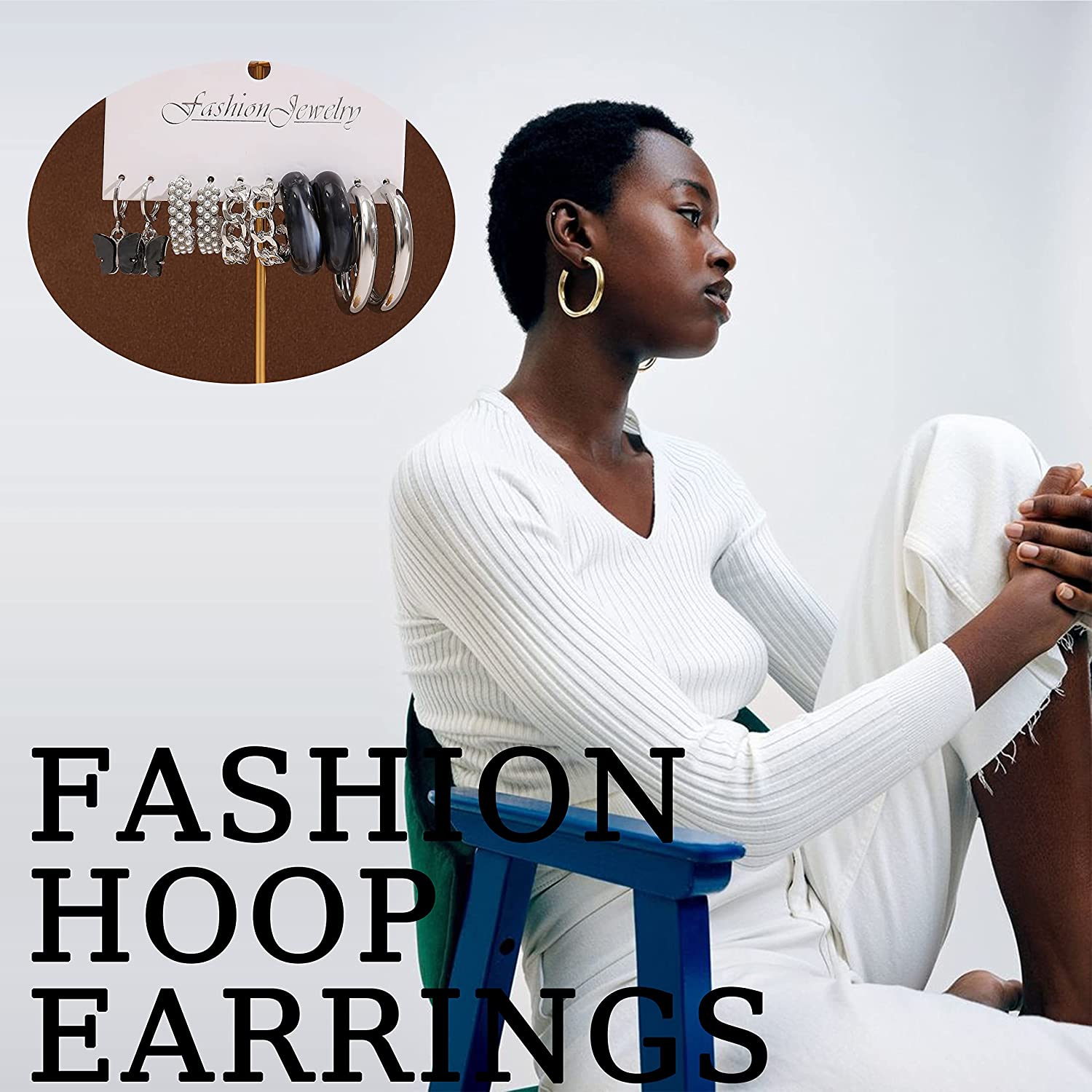 32 Pairs Gold Hoop Earrings Set for Women Girls, Fashion Chain Link Hoop Stud Drop Dangle Earrings Boho Statement Hypoallergenic Earrings for Christmas Jewelry Gift