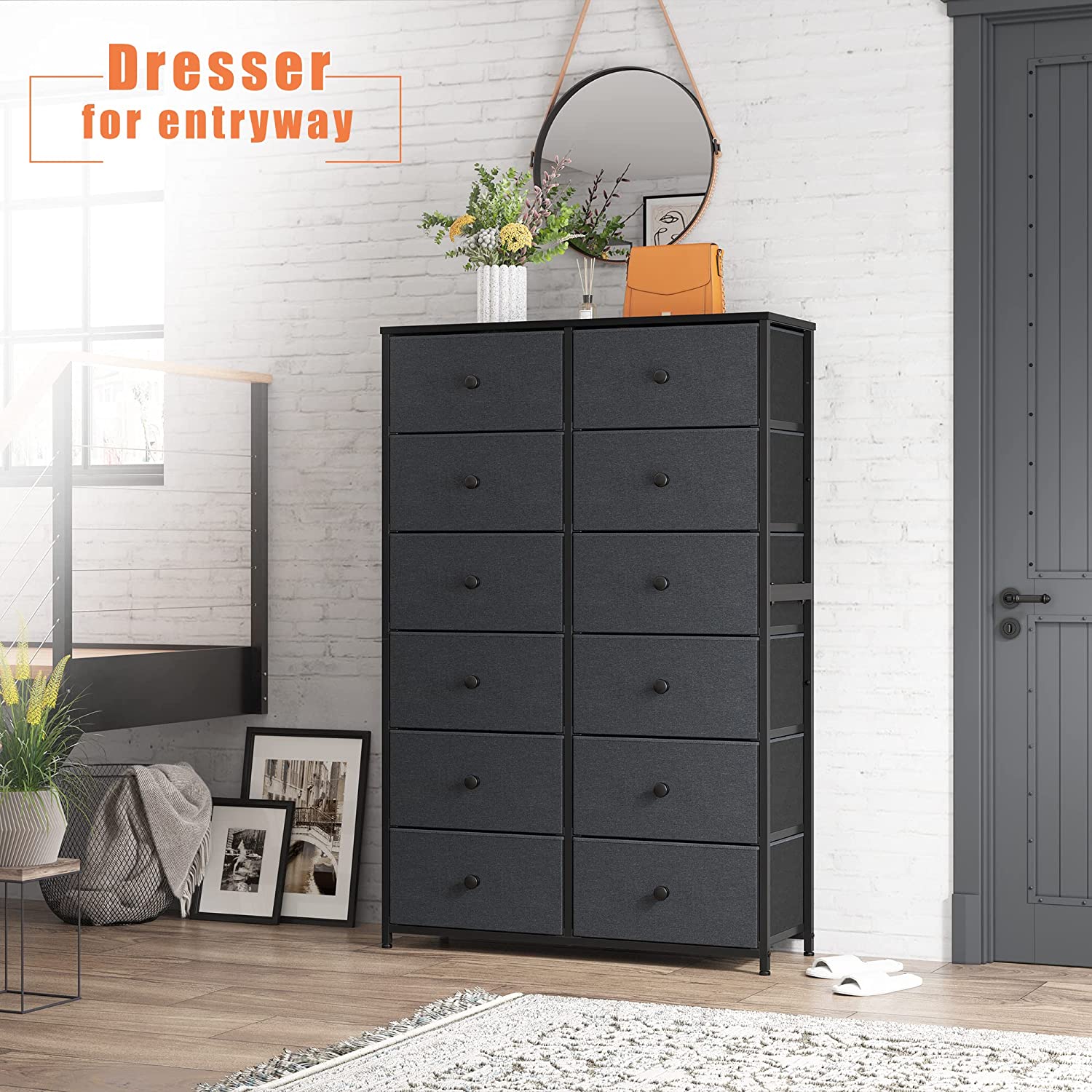 【52.3"H TALL DRESSER FOR BEDROOM WITH 12 FABRIC DRAWERS】According to the needs of the market, we designed the 52.3"h tall chest of drawer for bedroom with 12 removable storage drawers, which takes up a small space, but still providing sufficient storage space to store your clothes, scarves, socks, T-shirts, pants, sunglasses, books and small toys, etc.; keep your room clean and tidy all the time.