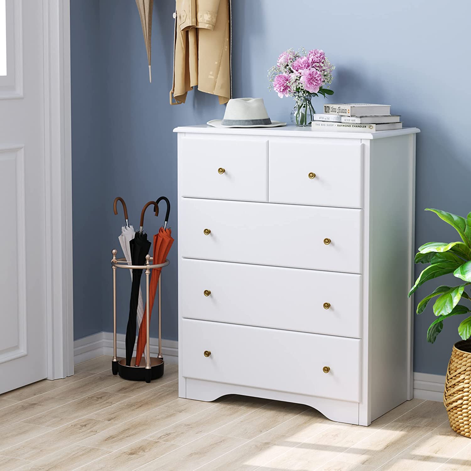 Modern Style - Complete with a rich white finish that lends a handsome design aesthetic, this 5 drawer dresser introduce a balance between modern charm and contemporary elegance bring a stylish touch to your home