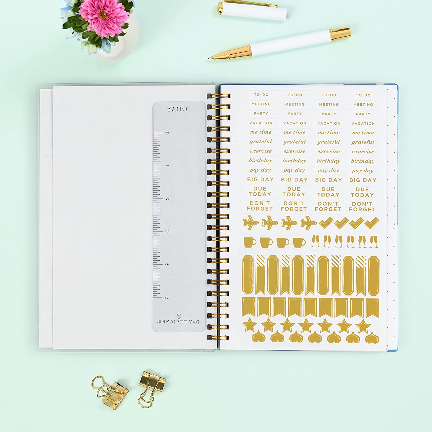 • Yearly calendar planner includes stickers, an interior paper pocket, a snap-in bookmark, a convenient list of holidays, reference calendars and extra notes pages to accommodate your scheduling needs