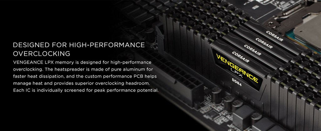 • Vengeance LPX is optimized for wide compatibility with the latest Intel and AMD DDR4 motherboards.