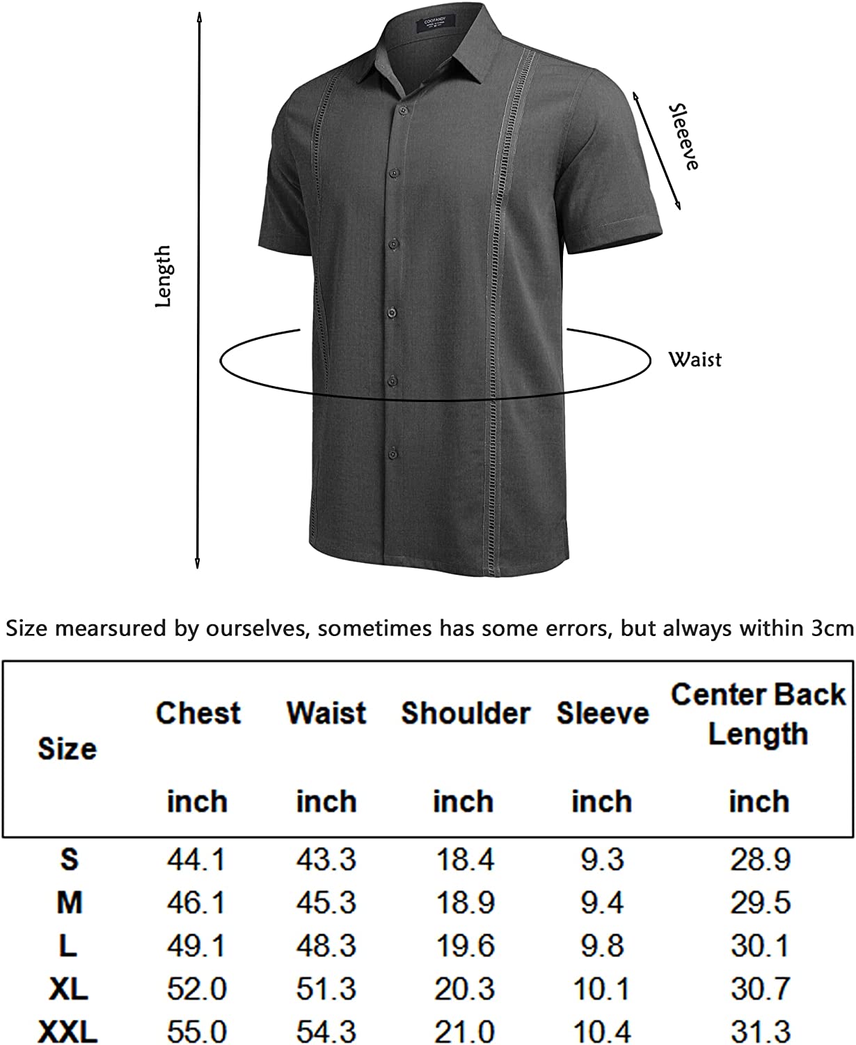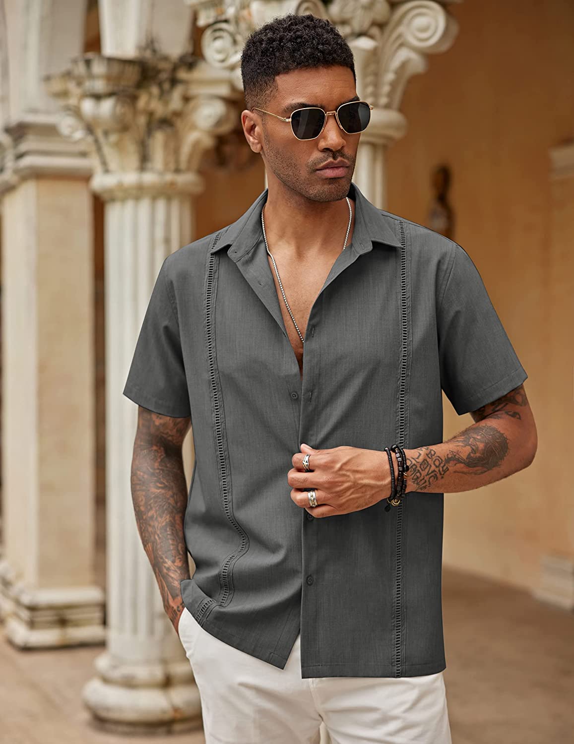 COOFANDY Mens Short Sleeve Cuban Guayabera Shirt Casual Summer Beach Button Down Shirts