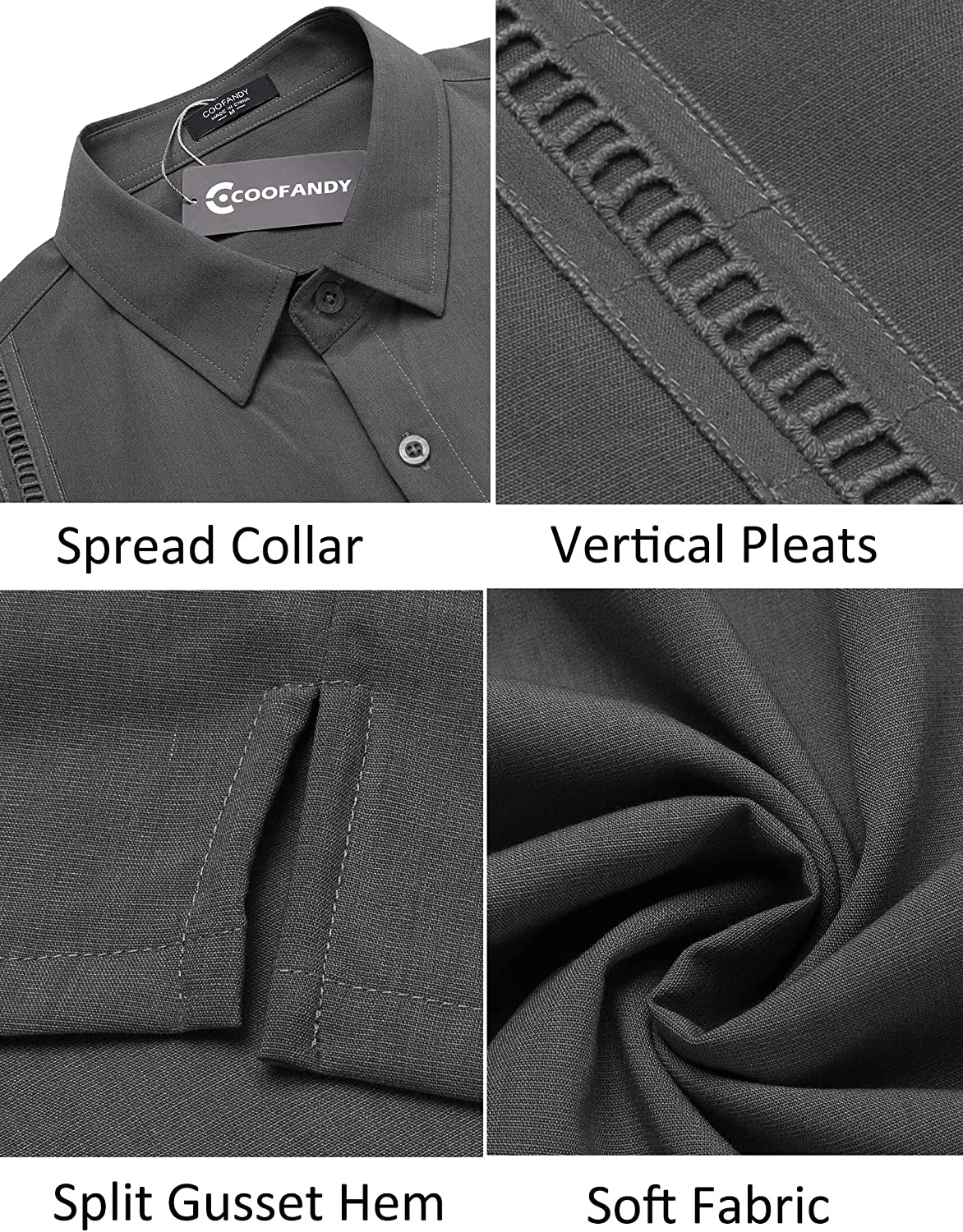 • DISTINCTIVE GUAYABERA - This guayabera shirt features spread collar, short sleeves, solid color, buttoned placket, vertical pleats, split hem gusset, straight hem. Considerate details of design bring you pleasure wear feeling.