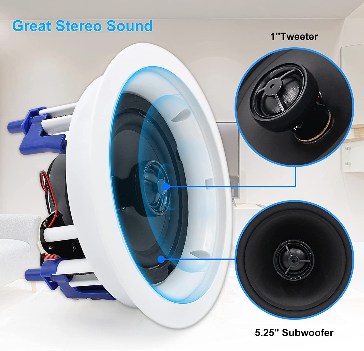 【Easy to Install】The ceiling speakers use in a compact flush mount design for simple easy installation in-wall / in-ceiling , or pre-cut speaker openings, perfect for in home use, office, professional, or custom audio applications on any flat surface