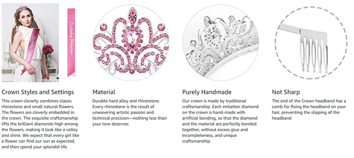 • ❤️Rhinestone Tiara: Made of high quality clear crystals in Gold-plated metal setting, eco-friendly. Perfect for any party use. It can also be used as a good photo prop, princess and queen style photos can be taken at any time. Besides, the end of the Crown headband has a comb for fixing the headband on your hair, preventing the slipping of the headband