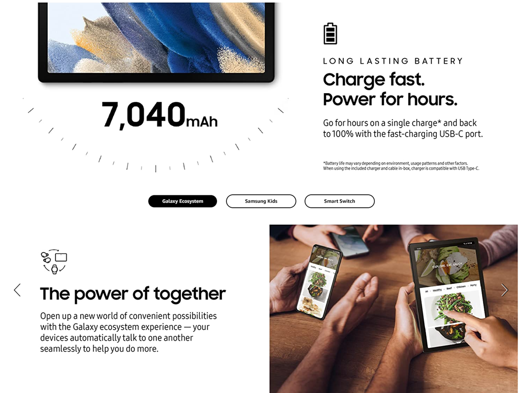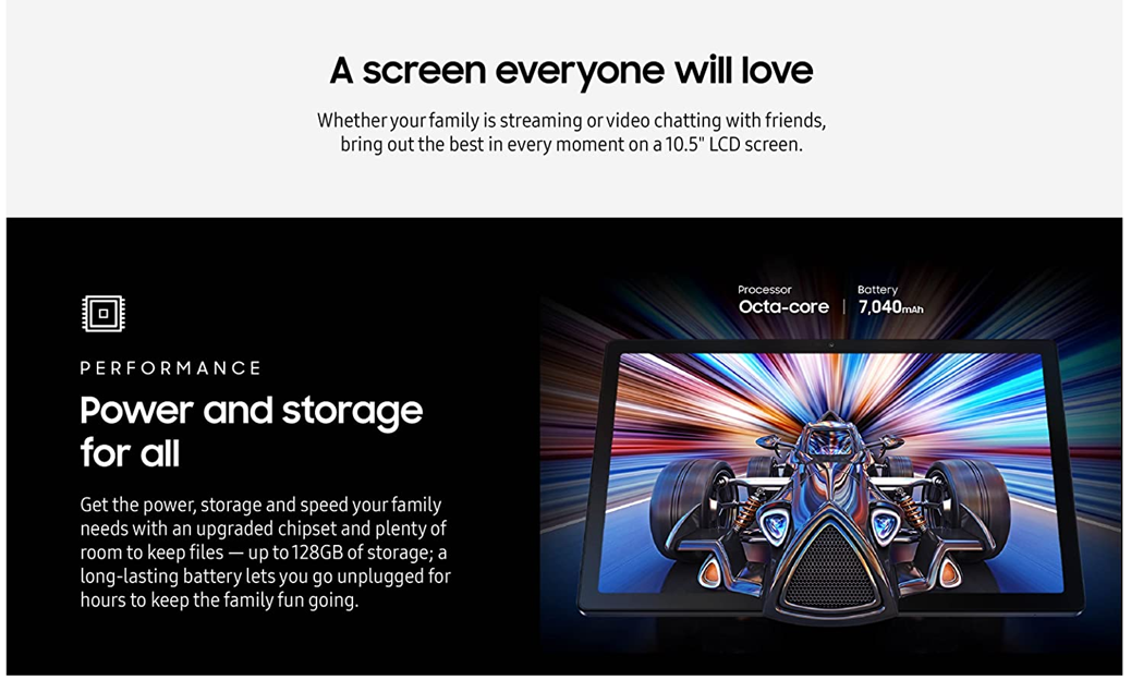 A SCREEN EVERYONE WILL LOVE: Whether your family is streaming or video chatting with friends, the Galaxy Tab A8 tablet brings out the best in every moment on a 10.5" LCD screen
