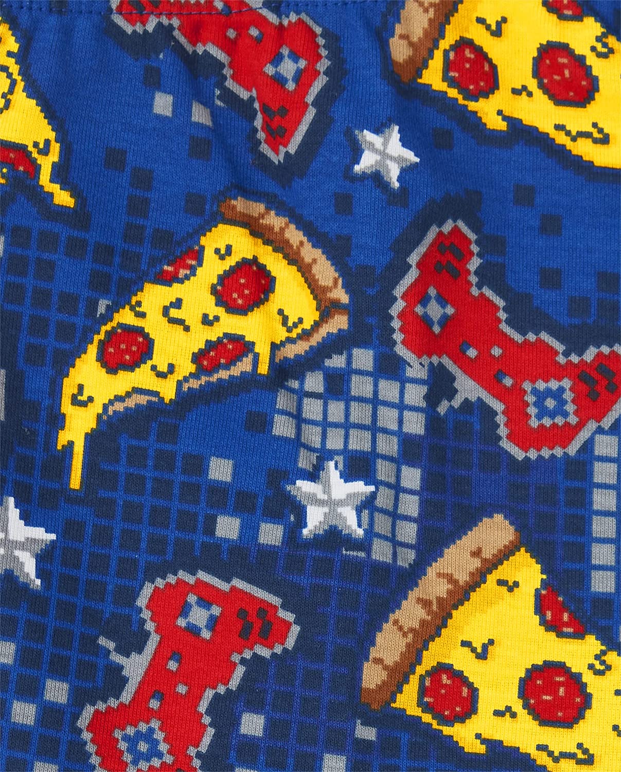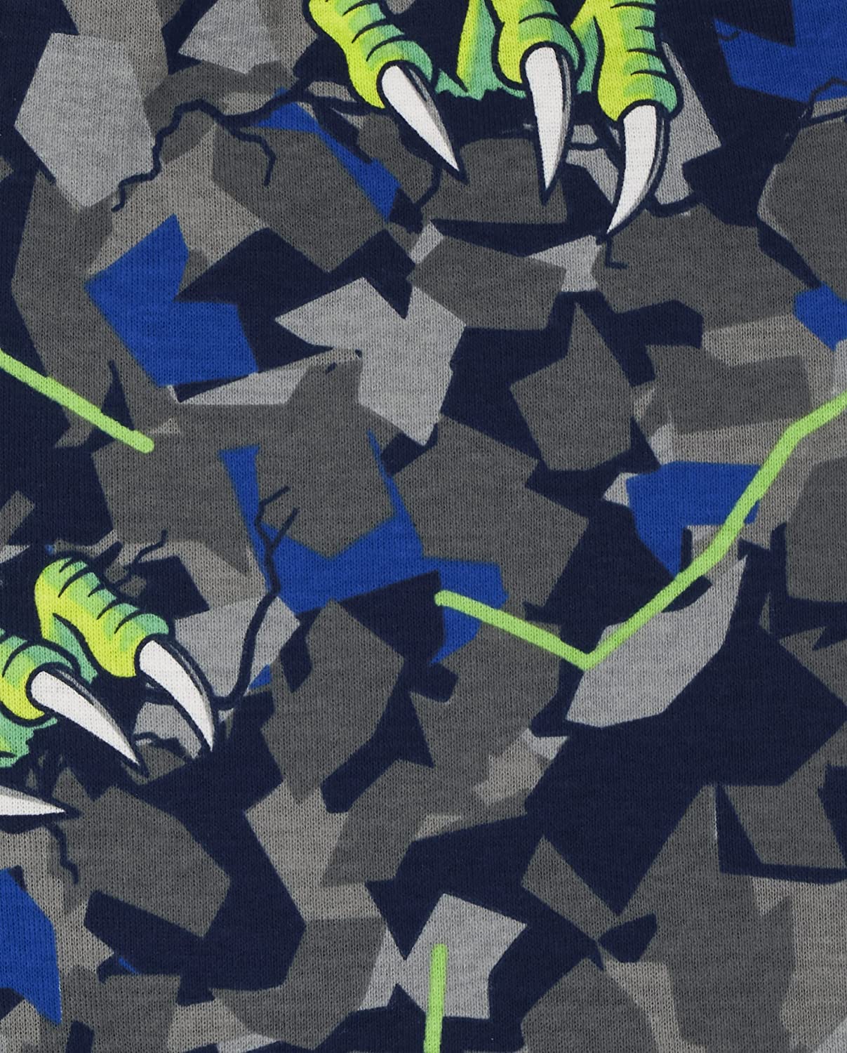 - PAJAMA SHORTS — Features pull-on elasticized waistband and allover camo with dino claws print