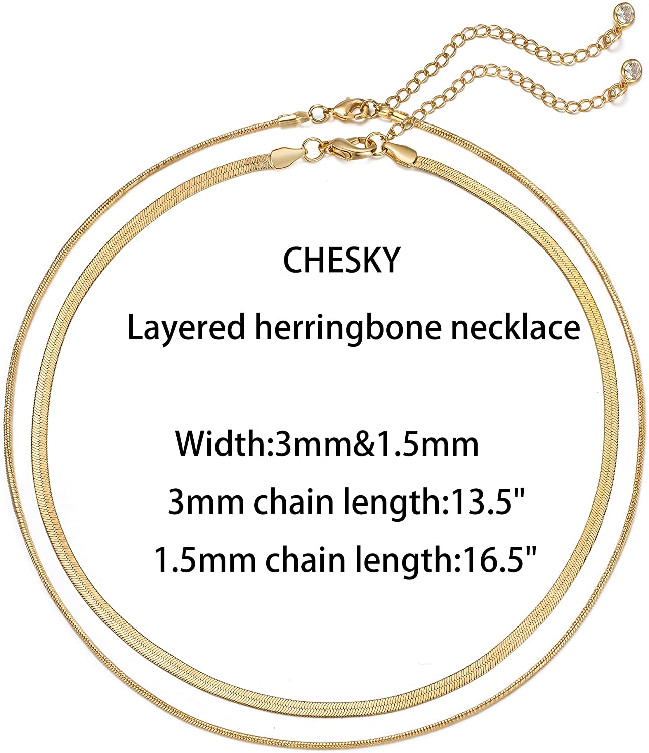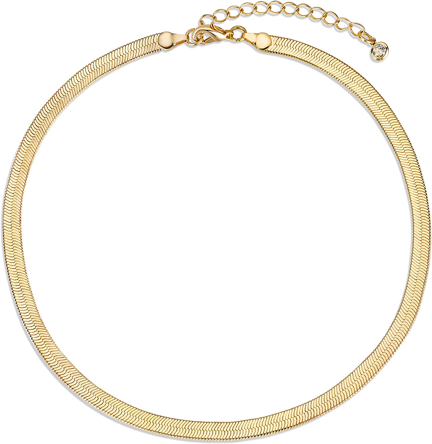 CHESKY 14K Gold/Silver Plated Snake Chain Necklace Herringbone Necklace Gold Choker Necklaces for Women Girl Gifts Jewelry 1.5/3/5MM(W) 14"/16"(L)