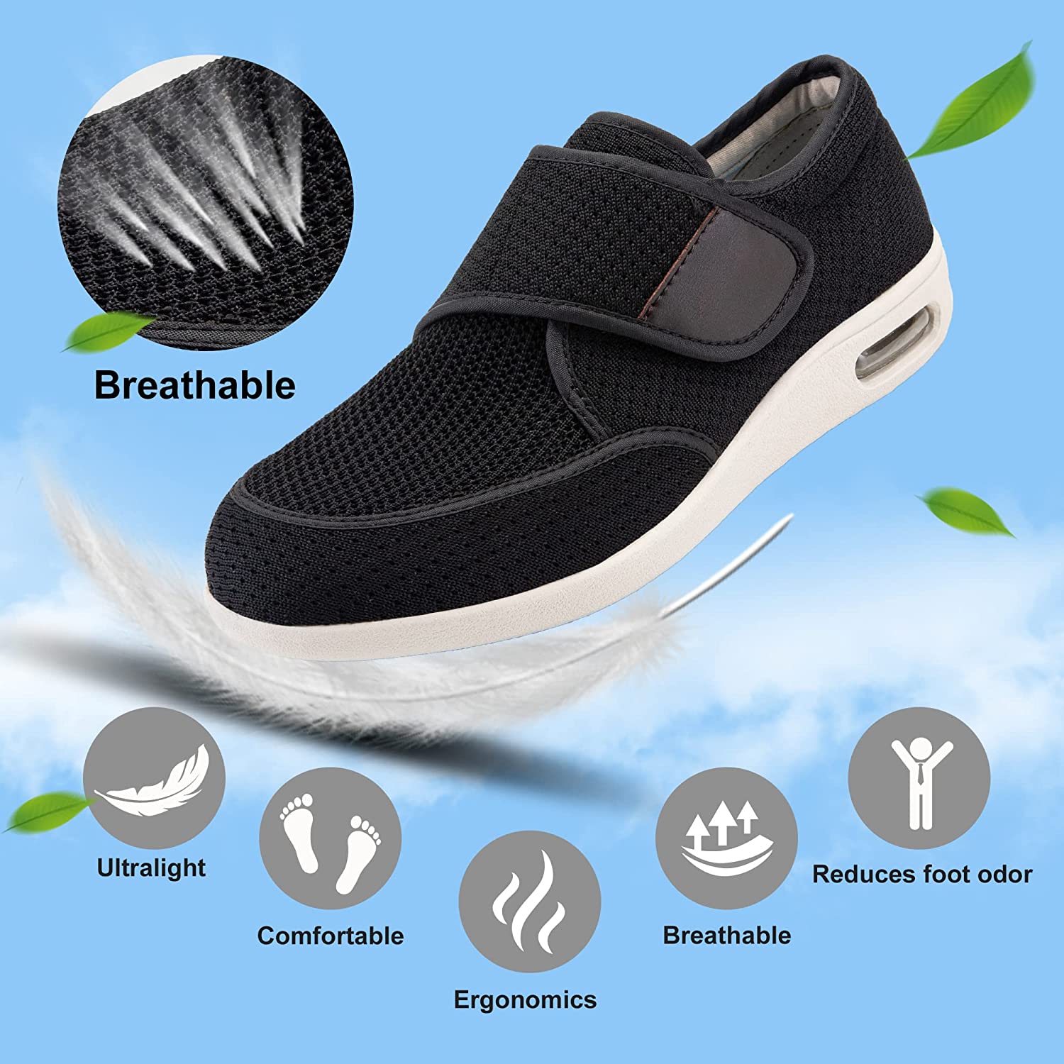 【Comfortable Swollen Feet Shoes】 : The diabetic shoes for men have a unique velcro design, free adjustment for different instep height. The lining can be pulled to the toes, so that your swollen feet can easily wear into the shoes, perfect fit for edema and swollen feet.