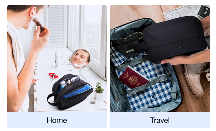 Easy to Carry - Sturdy handle makes the shaving bag easier to carry. Lightweight mens toiletry bag won't put an extra load on your luggage. This compact size travel bag for toiletries can store in suitcases, backpacks, duffle and luggage.