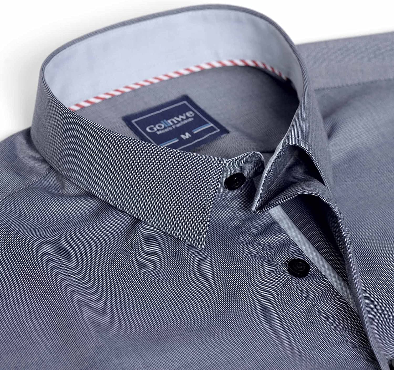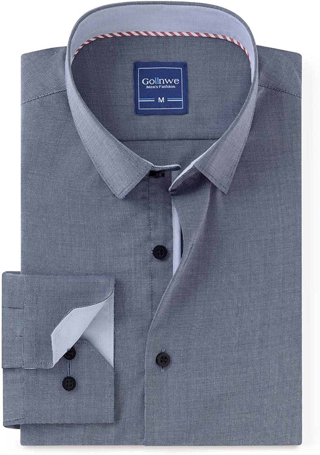 Gollnwe Men's Long Sleeve Slim Fit Casual Shirts Contrast Collar and Convertible Cuffs Dress Shirt