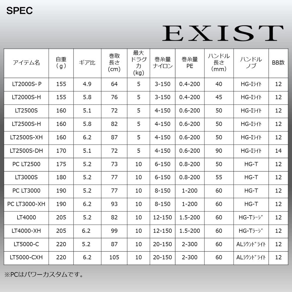 Standard winding weight: Nylon (lb-m): 20-150 / PE (No. -m) 2-300