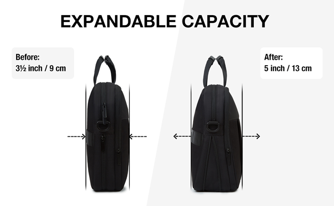 - EXPANSION & MULTIPLE COMPARTMENTS- 17.1"L x 6.5''(up to 8.7'') W x 13"H; weight: 2.31 lbs. The expansion zipper of briefcase makes it more flexible, the laptop briefcase can be transformed as a duffel bag whenever you need.