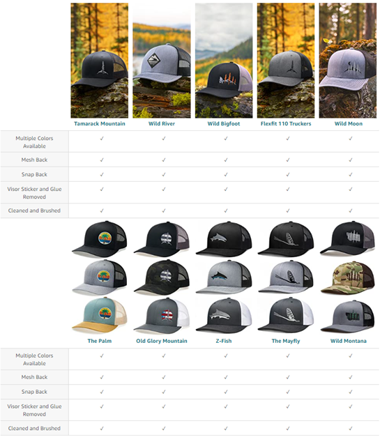 At Larix Gear we are serious about embroidery. Every Larix hat is embroidered right here at our shop in Columbia Falls Montana by us. It's our highest priority to achieve outstanding results by using the most advanced sewing technology and techniques available today. We have chosen Pacific Headwear 104c Richardson 112 and Yupoong 6606 models as our base trucker hats for the Larix designs. We believe these hats represent the best snapback mesh back adjustable retro trucker hats available anywhere. They are very similar to each other in quality fit shape and size. By using these models we can offer a better range of color options and in-stock availability. Not only are we committed to beautiful artwork clean stitching and crisp hats but we also painstakingly remove every visor sticker and more importantly the glue left behind. After removing the visor sticker as well as the glue we brush each hat and use forced air to remove any thread or contaminants that have hitched a ride during the manufacturing process. Then we wrap your Larix hat in tissue paper before placing it in our custom box to keep it clean and safe during its long journey to you. You will immediately understand the level of care and craftsmanship put into your Larix hat upon receiving and opening your box.