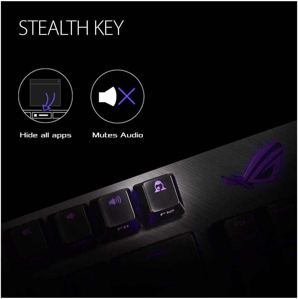 • DURABLE CONSTRUCTION – Resilient Aluminum top plate in striking slash aesthetics looks classy. A stealth key (F12) hides all apps & mutes audio, and quick-toggle between FN and media controls let you switch between work & play instantly