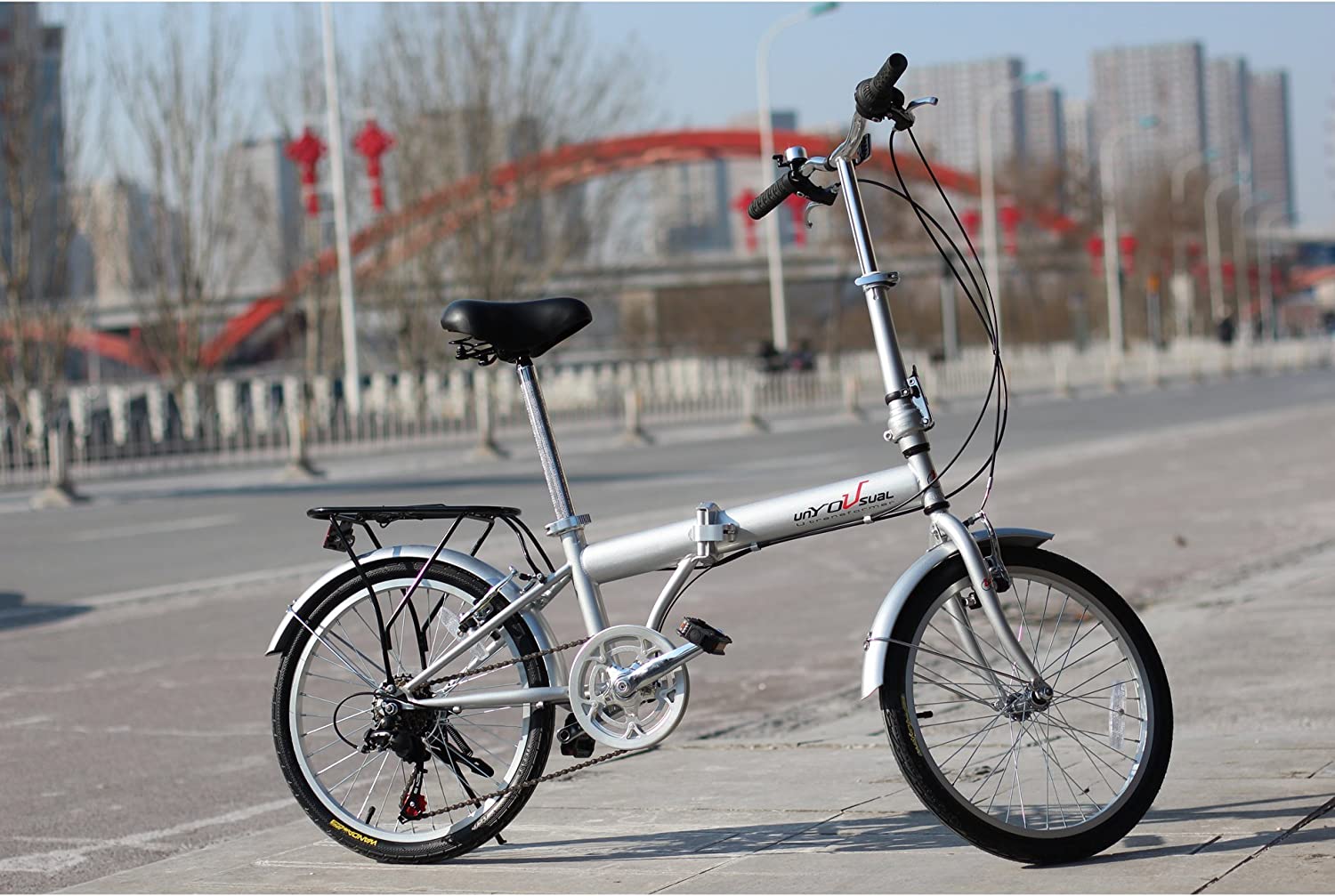 20 - inch folding bicycle designed for commuting and exercising. Shimano 6 speed shifter and derailleur. semi-alloy front and rear V-brake. WANDA 20" x 1.75 tires Quick removable front handle stem. with alloy silver color cap & PVC black bell. Easy assembly and ride