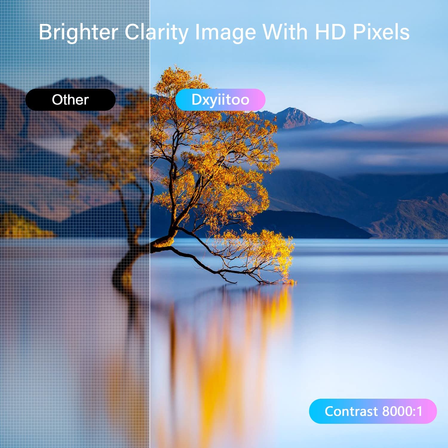 Dxyiitoo 2022 upgraded portable built-in DVD player video Projector supports 1920 x 1080p resolution. it raises the brightness to 7500lm to make the picture brighter, improves the contrast ratio to 8000:1 to make the picture more delicate, and increases the size of the projection screen to 250 inches to be more comfortable when watching videos. it will bring you the ultimate home theater viewing pleasure.
