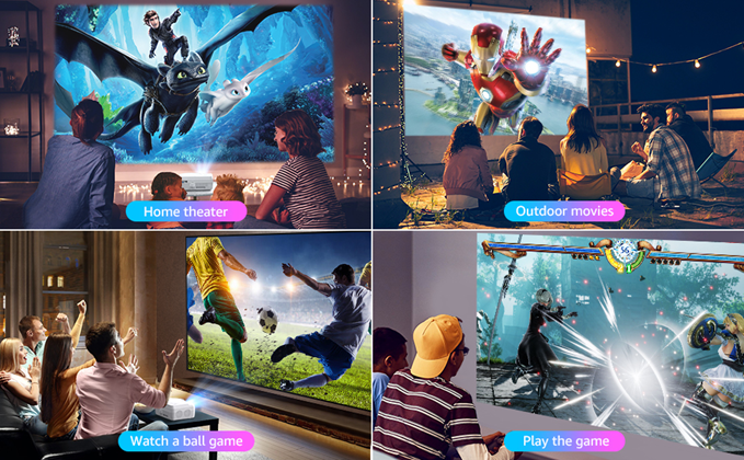 Contrast is the amount of difference between the darkest and brightest areas of a picture. A projector with a high contrast ratio provides clearly shadow detail and deep black levels, adding a sense of depth and dimension to the picture. When you compare the Dxyiitoo projector with other portable projectors, you will find the image of our projector is more conspicuous and clearer, and the color is more vivid and bright.