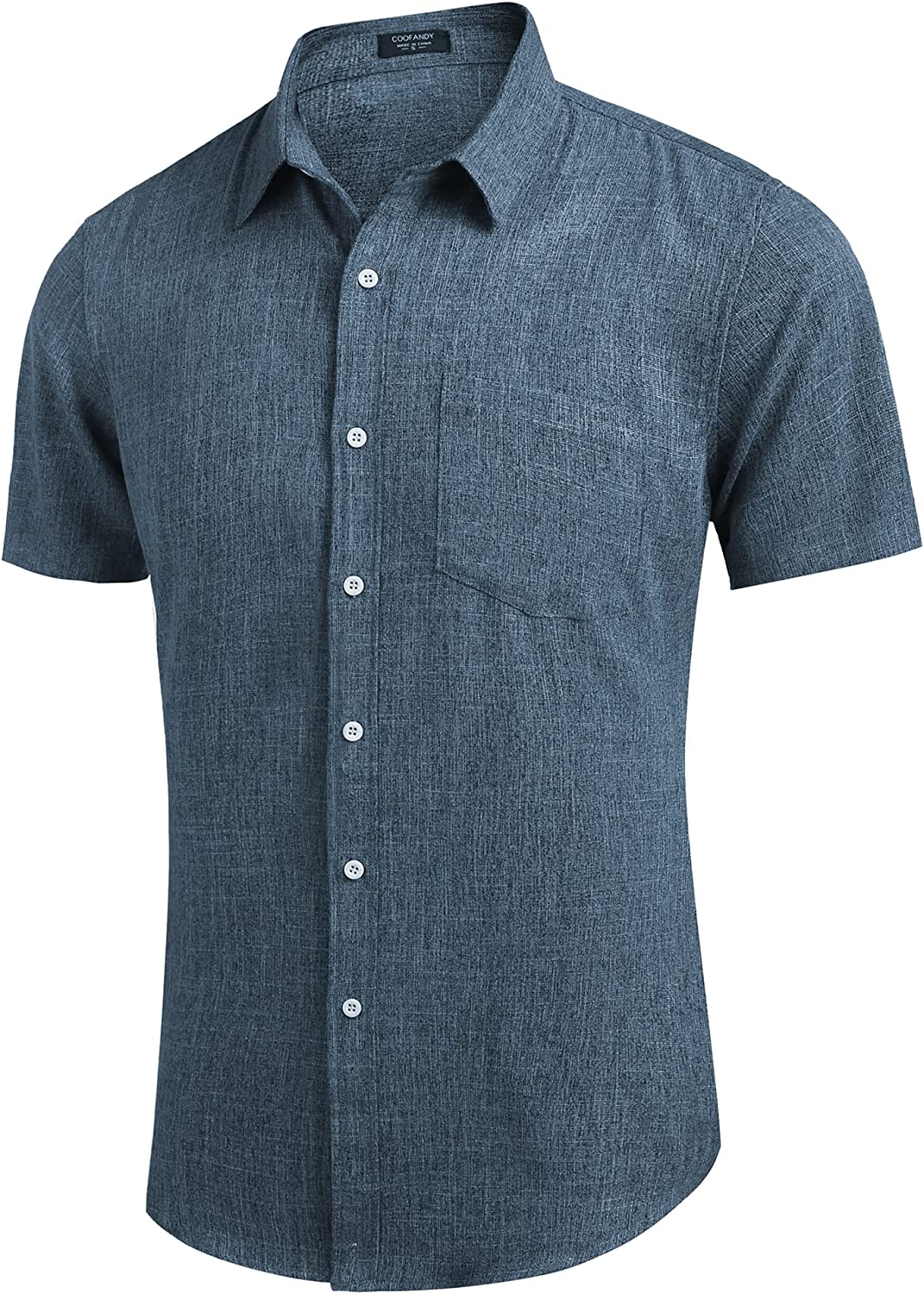 - CLASSIC AND STYLISH LOOKING --- The linen casual business slim fit button down shirts for men have the exquisite craft, lightly tapered through the waist for a tailored look. Match with solid t-shirts, or suit sportcoat blazer, chino pants, jeans and shorts to round out your look.