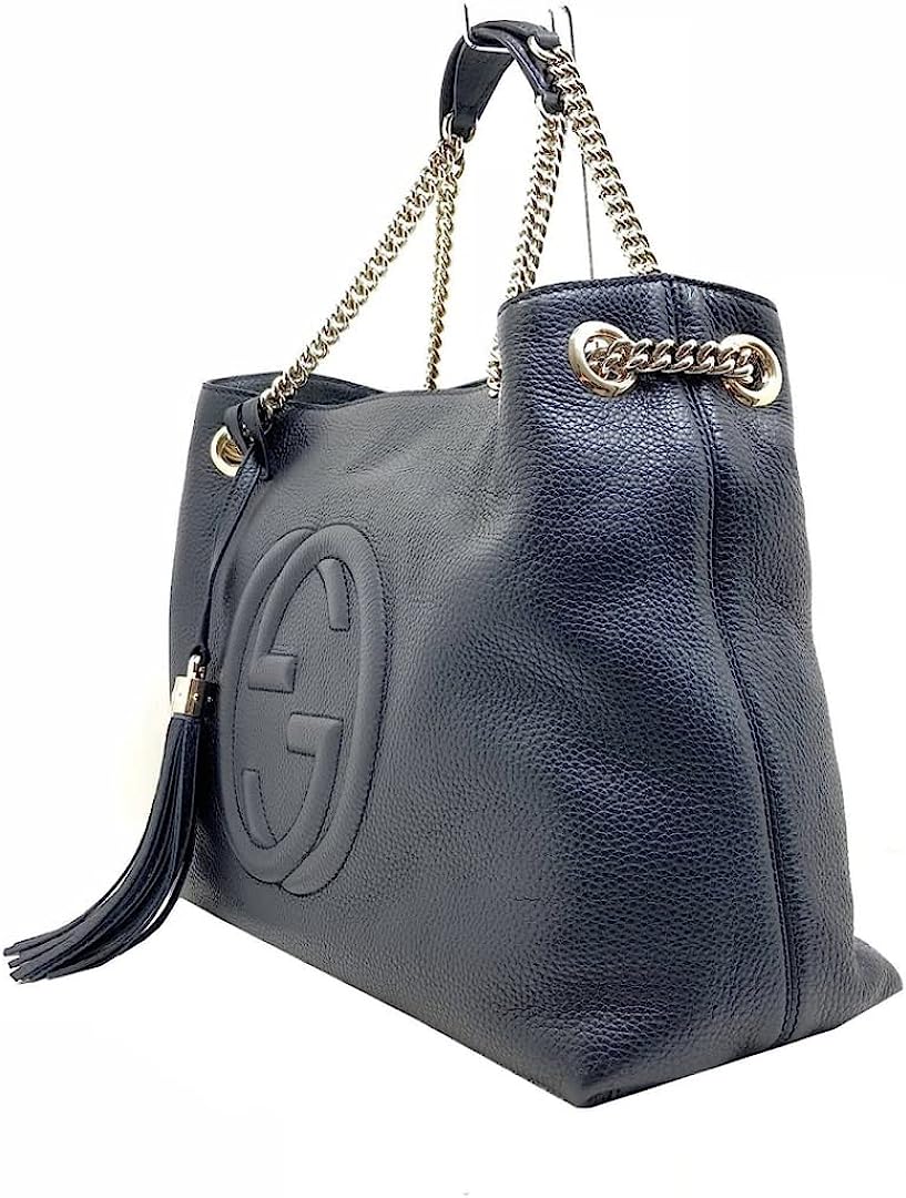 Gucci SOHO Black GG Logo Leather Chain Tote Bag Style 536196
