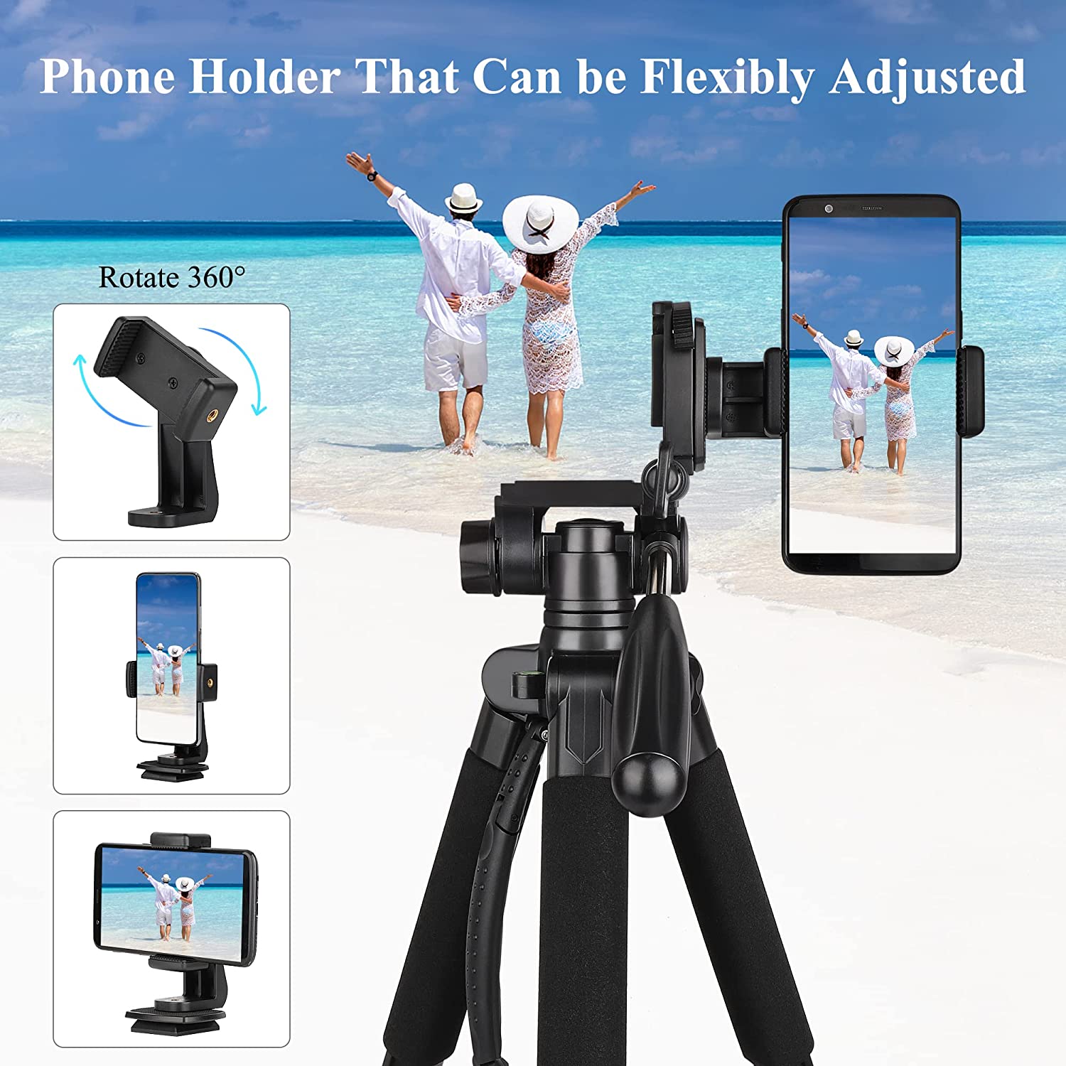 【Tripod for All Camera and Phone】Standard 1/4" screw mount and 3/8" screw compatible with all cameras ( Canon, Nikon, Fujifilm, Olympus, Panasonic), DSLR, SLR, and digital cinema cameras, also spotting scopes, projector, compact camcorders, binoculars. The 360° phone mount is compatible with iPhone 14 13 12 11 Pro/XS/XR/MAX/8/8 Plus/X/7 Plus/7/6s Plus/6s/6 Plus/6/Samsung Galaxy S22/ S21 Series/ Galaxy Z Flip/ NOTE/ One Plus 1+Series.