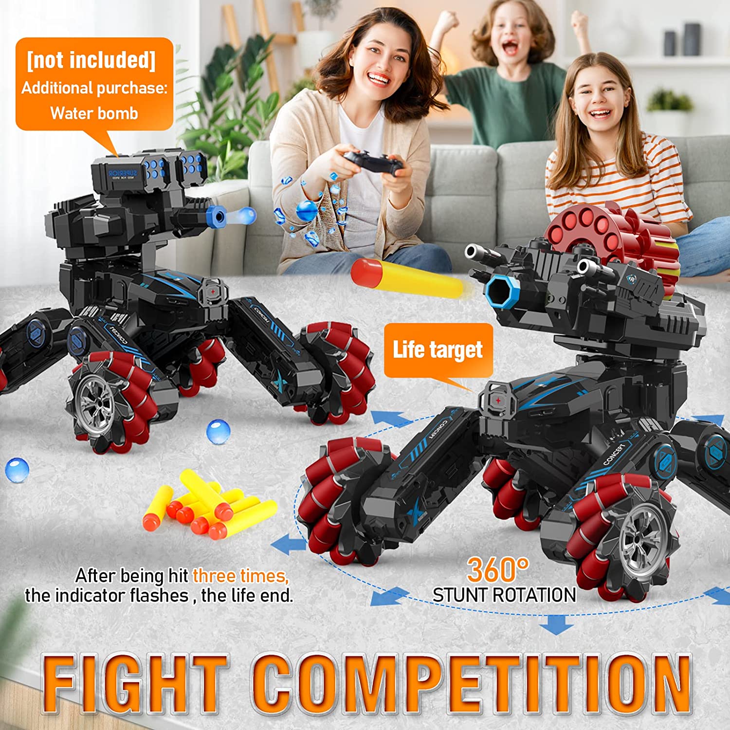 • 【Various Accessories】For more soft bullet options, search ASIN B09YKTZNC1. Please note that the water bomb turret is not included in this package but can be ordered separately with ASIN B09YL7QHL6. This Dual Mode RC Drift Car is the perfect gift for boys and girls who love to build, race, and battle!