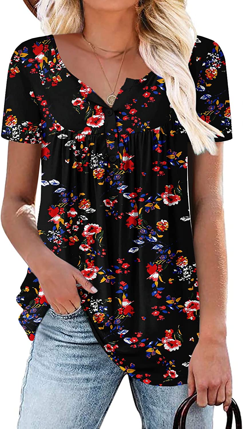 Feature:Womens Casual V neck short sleeve blouse tops, floral print,ruffle design,loose fit,trendy and elegant.