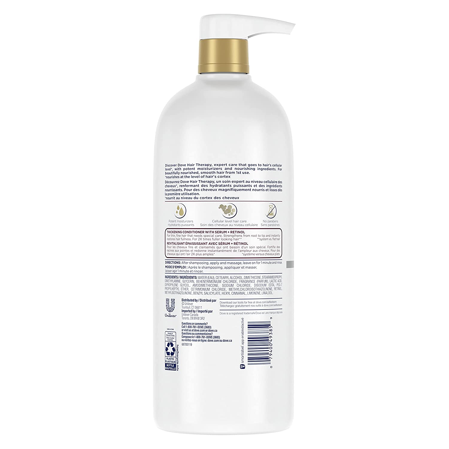 Dove Hair Therapy Conditioner Strengthening Treatment for Thin, Fine Hair Strength and Fullness Boost Sulfate Free Conditioner for 2X Visibly Fuller, Thicker Hair 33.8 oz