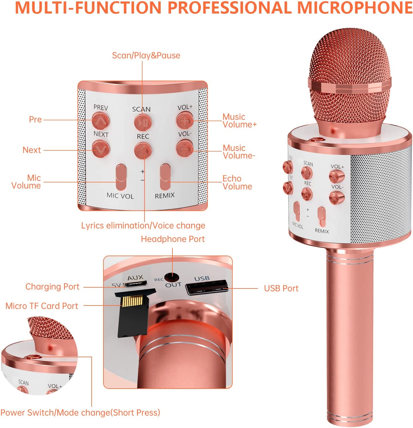 • Equipped with the professional audio processor, echo sound, music sound, feel free to adjust