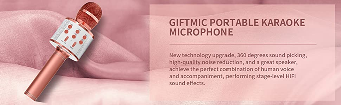 • 【Amazing Gifts】Beautiful appearance, comfortable feel, suitable for kids and adults. Perfect for KTV singing, gathering singing, family singing, travel singing, car stereo, instrument recording, interviews and live, etc. GIFTMIC Bluetooth microphone is a great gift to bring surprises and joy.