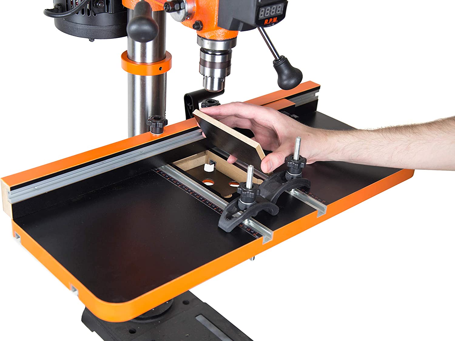 Remember when you could drill into your big old workpieces? Take your drill press to the next level with the WEN Drill Press Table. The spacious 23-7/8-by-11-7/8-inch table creates additional support for larger workpieces. The sturdy 1-inch thick MDF body prevents warping and wobbling during operation. Onboard rulers maximize accuracy for precise and even cuts while the adjustable 23-5/8 in. x 2 in. fence and stop block allow you to perfectly line up any project. The removable insert allows users to drill completely through their workpiece without damaging the table. Our unique table design provides clearance for the drill press’ height adjustment crank, making for easy vertical adjustments of your table. Compatible with the entire line of WEN drill presses, including the WEN 8-Inch Drill Press (models 4206 and 4208), the WEN 10-Inch Drill Press (models 4210, 4210T & 4212), the WEN 12-Inch Drill Press (model 4214), the WEN 15-Inch Drill Press (model 4225), and the WEN 17-Inch Drill Press (model 4227). Although this drill press was designed with WEN in mind, its universal fit allows for installation on drill presses of all shapes and sizes. Simply tighten the included mounting clamps onto tables anywhere from 4 to 22 inches in width. This unit also comes with extra mounting clamps that double as hold down clamps to ensure your workpiece stays secure while drilling. And, because it’s a WEN product. all to make sure you remember WEN.