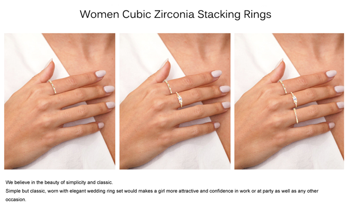 • Specification- The high-quality 5A cubic zirconia used in the stacking rings setting are not only sparkly but also durable, allowing for versatile usages such as statement rings, knuckle rings, thumb rings, pinky rings, and more
